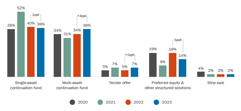 Both single and multi-asset continuation funds continue to dominate the GP-led secondary markets, particularly for top-tier assets where sponsors are seeking to extend their hold period.